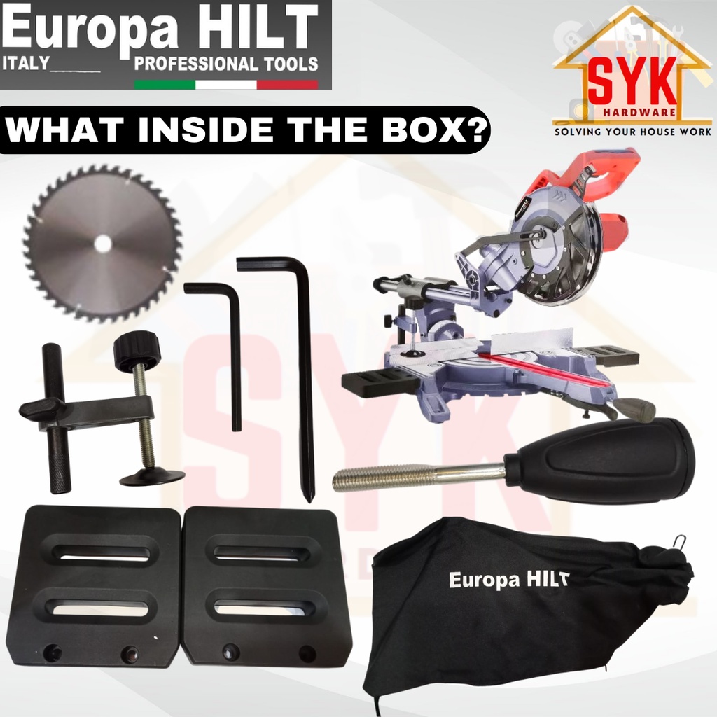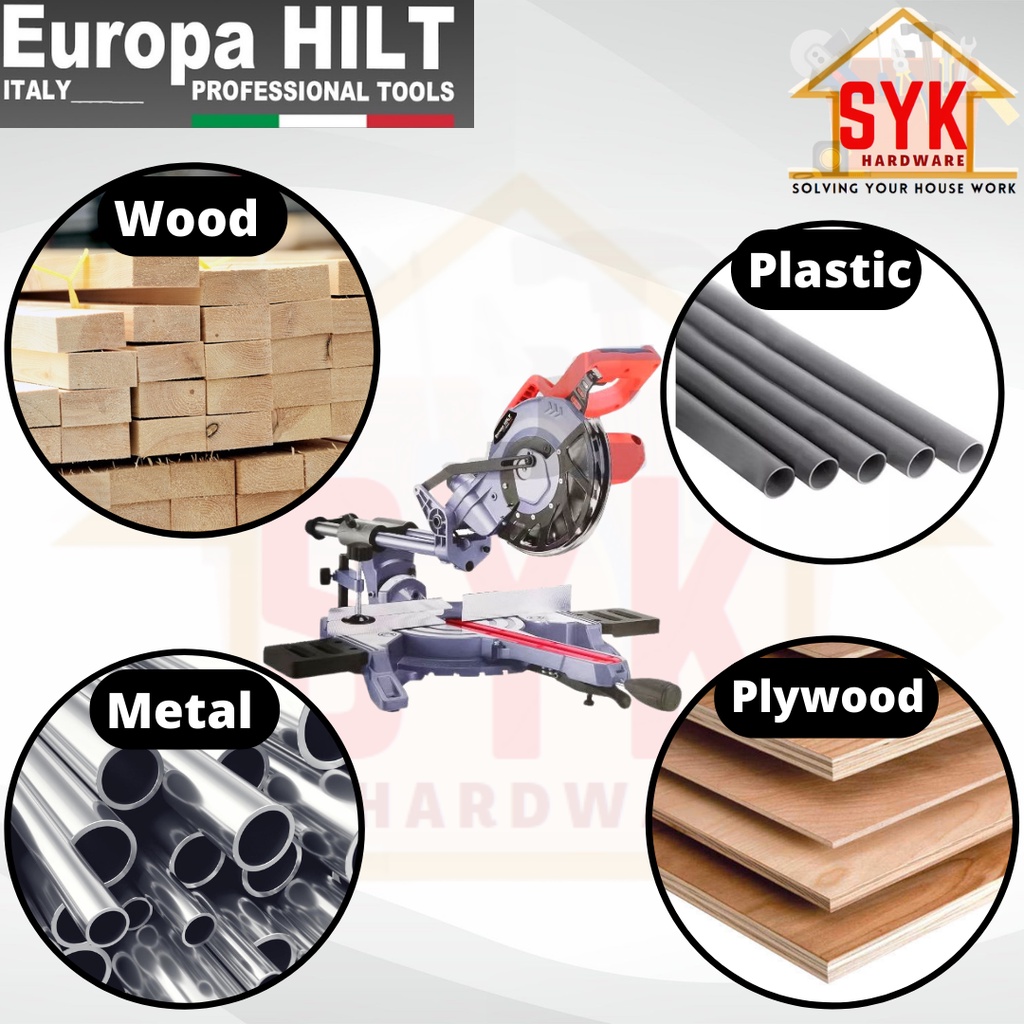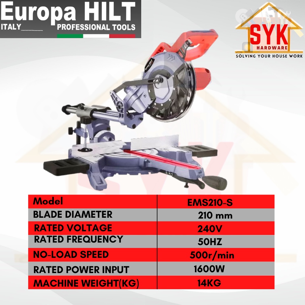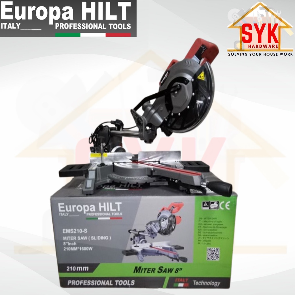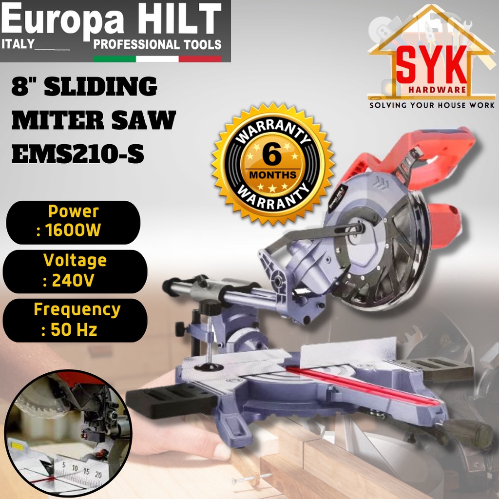 SYK Europa Hilt 8 Inch EMS210-S Sliding Miter Saw Machine Cutting Saw Mesin Potong Kayu Besi Mesin Gergaji