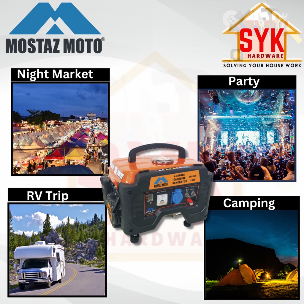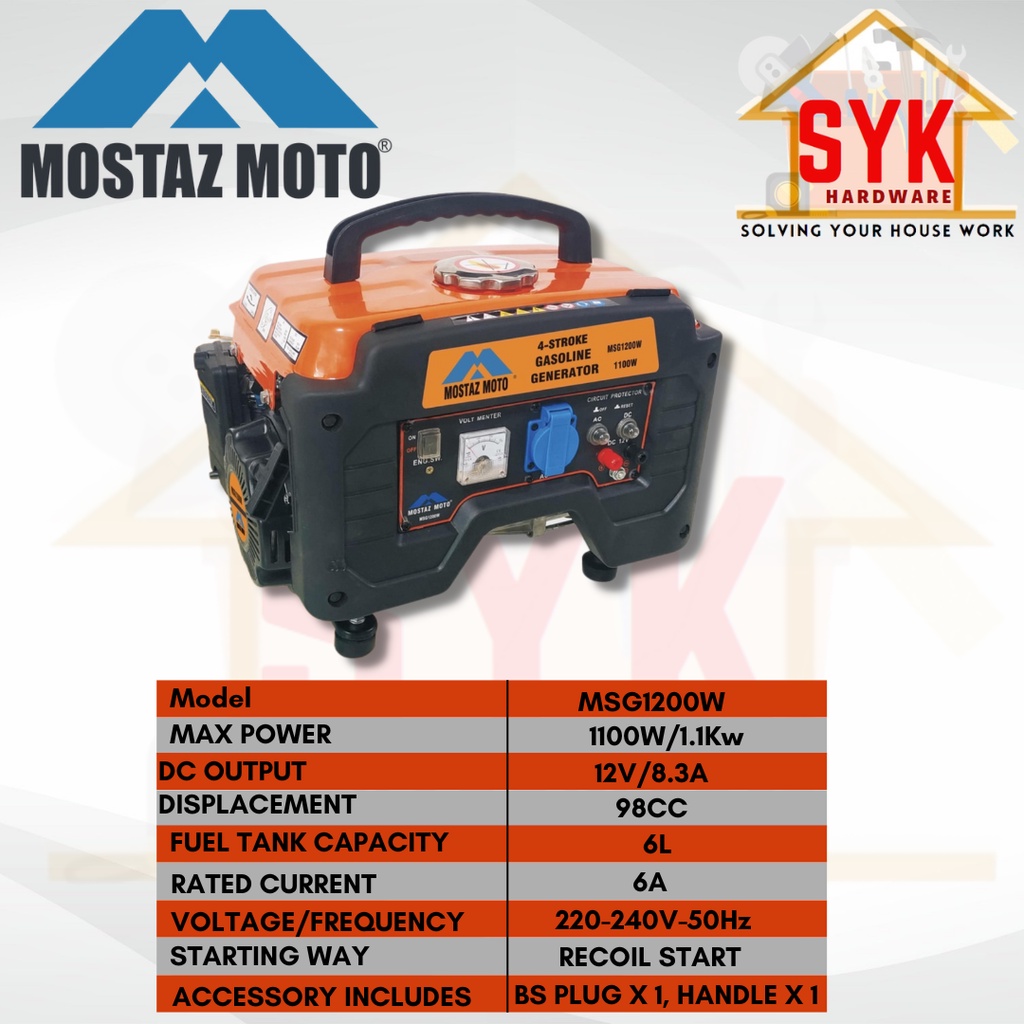 SYK Mostaz Moto MSG1200W Gasoline Generator 4 Stroke Generator Power Supply Generator Camping Pasar Malam