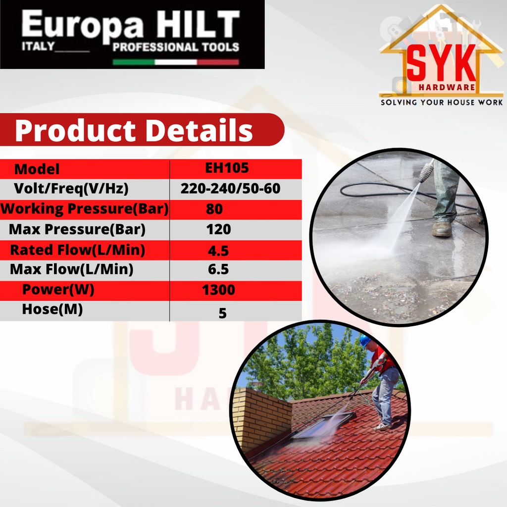 SYK Europa Hilt EH105 High Pressure Cleaner Water Jet Machine Washer Car Washing Mesin Pump Cuci Kereta FREE GIFT