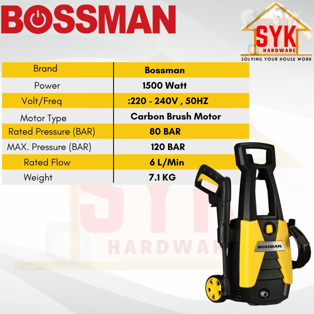 Product Specification about Bossman BQ4630C-120C High Pressure Washer - 1500W