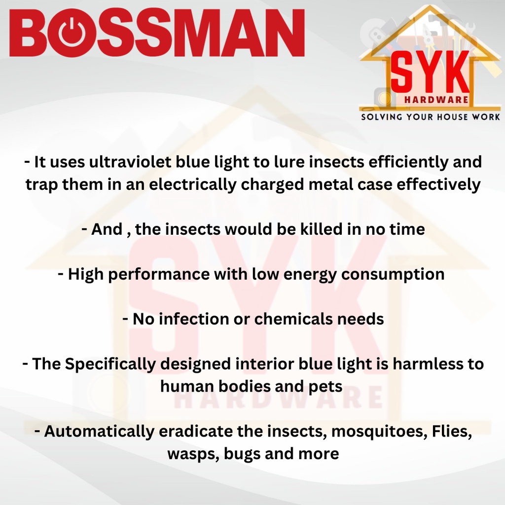 View more about SYK BOSSMAN Electric Mosquito Trap BQH-10 Mosquito Killer Lamp Perangkap Nyamuk Elektrik Pembunuh Nyamuk Killer on main site