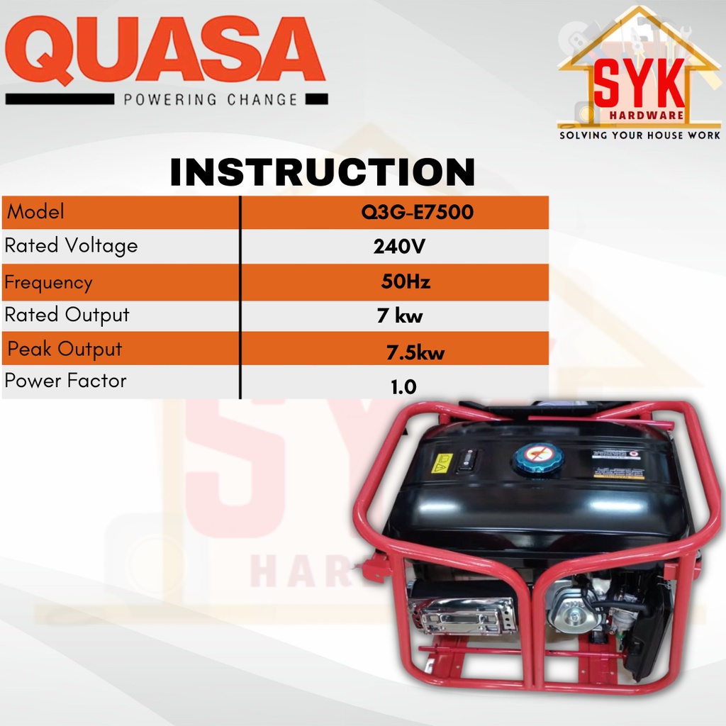 SYK FREE SHIPPING Daewoo Quasa Q3G-E7500 GD8000E Gasoline Petrol Generator Outdoor Camping Pasar Malam