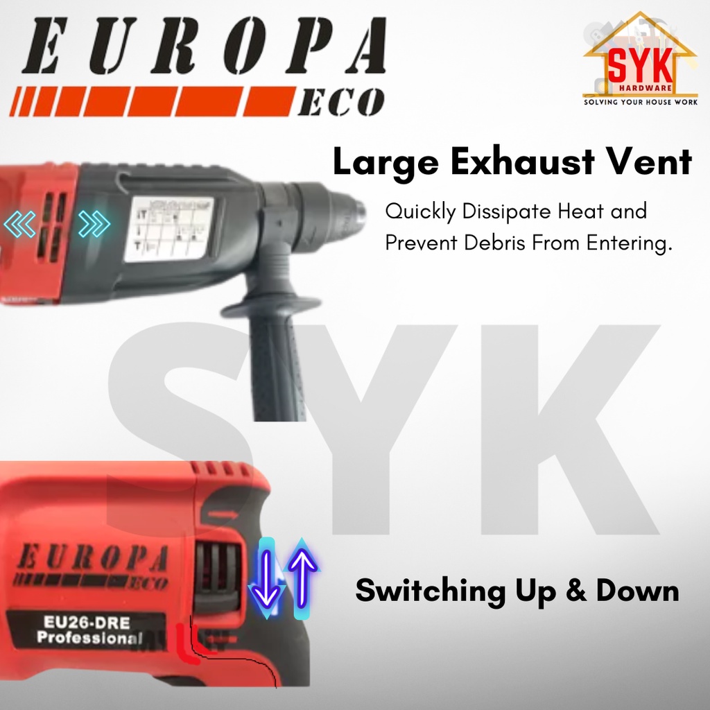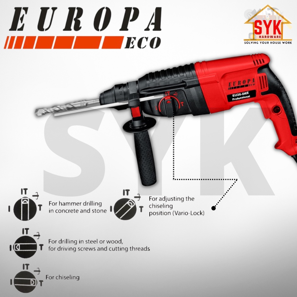 SYK Europa Hilt EU26-DRE 900W 3Mode Function Electric Rotary Hammer Concrete Steel Wood Rotary Drilling Machine